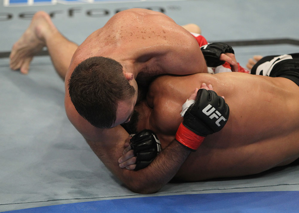What Happened: O'Brien seemed to be the aggressor early in the bout but an apparent injury to O'Brien's foot or leg gave Miller the opening to come back and most likely win the 1st round. In the 2nd Miller took over knocking O'Brien with a right hand and got it down to the ground where he's excellent ground game was on display when he submitted O'Brien with a one arm guillotine.Jacob Volkmann defeated Danny Castillo by Unanimous Decision (29-28, 29-28, 29-28)